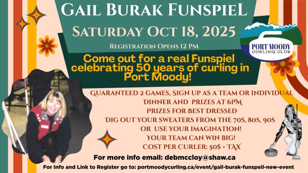 Come out for a real FUNSPIEL celebrating 50 years of curling in Port Moody! Dinner, great prizes, and fun times!